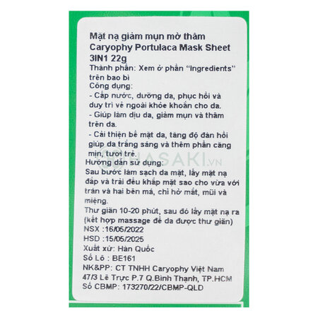 Mặt Nạ Caryophy Portulaca Mask Sheet 3in1 22g chính hãng hiện đã có mặt tại Hasaki với 4 quy cách đóng gói: 1 Miếng; 2 Miếng; 3 Miếng; 5 Miếng; 10 Miếng.