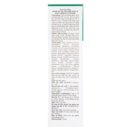 Nước Hoa Hồng Some By Mi AHA-BHA-PHA Cho Da Mụn Miracle Toner AHA-BHA-PHA 30 Days là dòng toner đến từ thương hiệu mỹ phẩm chăm sóc da Some By Mi của Hàn Quốc, có chứa phức hợp các loại axit cùng chiết xuất Tràm Trà, giúp làm sạch sâu da, hỗ trợ kháng khuẩn, kháng viêm, ngăn ngừa và làm giảm mụn, đồng thời góp phần thu nhỏ lỗ chân lông, mang lại cho bạn làn da sạch thoáng và mịn màng không tì vết.