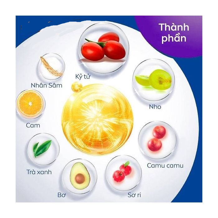 • Chứa 40x* Vitamin C từ 8 loại siêu dưỡng chất dưỡng sáng hiệu quả cùng dưỡng chất Q10 cải thiện độ săn chắc và đàn hồi của da. Kết hợp Vitamin E cho da ẩm mượt, mềm mịn.